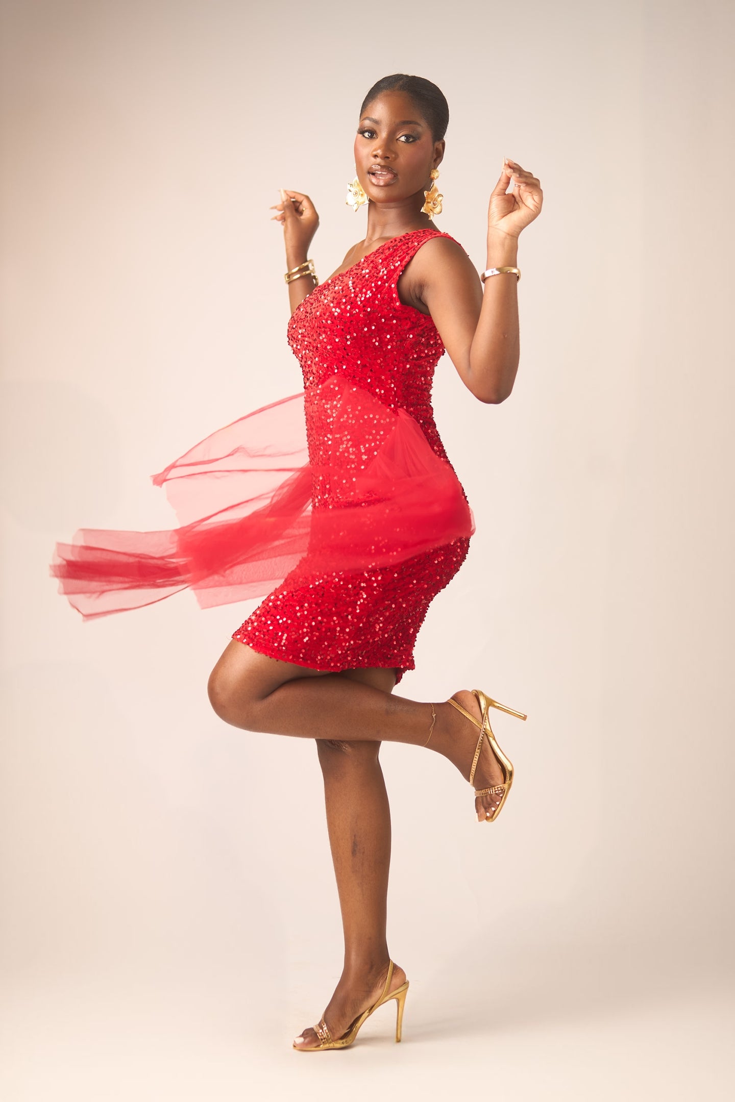 Birthday girl vibes... Effortless and chic, turn heads in this stretch velvet-sequin mono sleeve dress. Girls' night out? Date night? Cocktail? We got you covered.